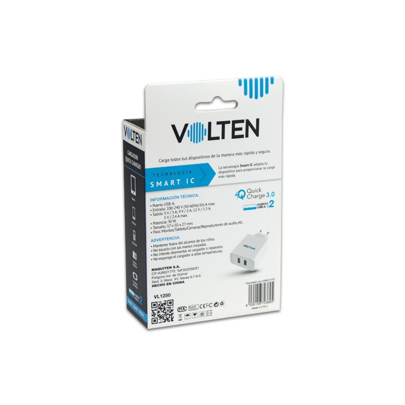 CARGADOR QUICK CHARGER + 2.4A 2XUSB VOLTEN