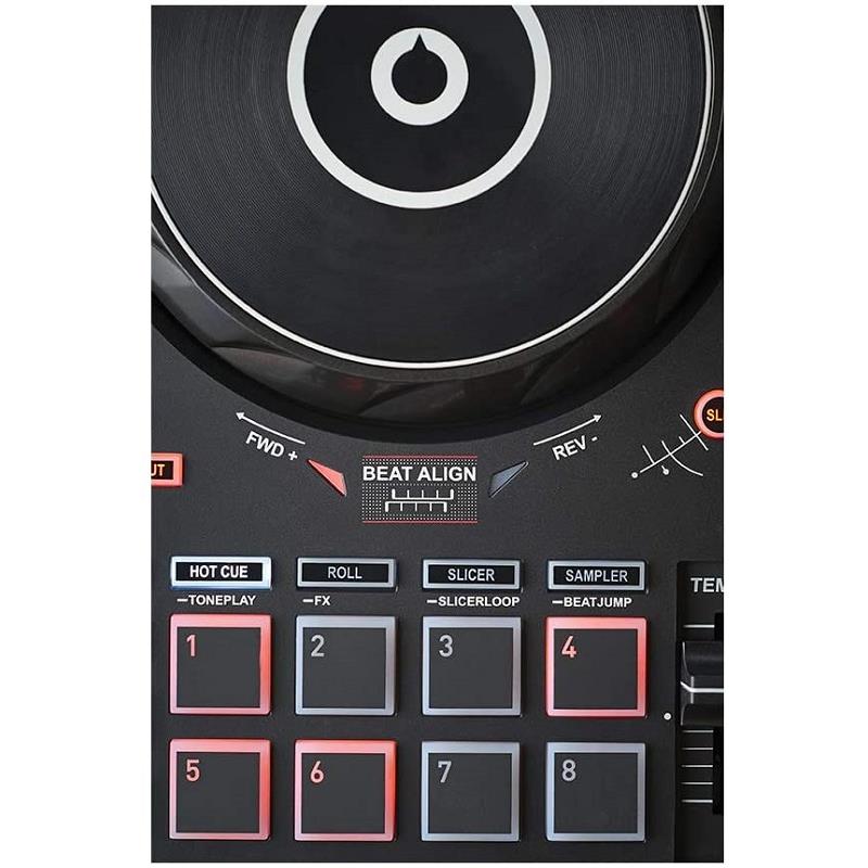 Aprende djing con las funciones exclusivas del controlador: guías luminosas de tempo y beat align, además de las funciones assistant y energy.