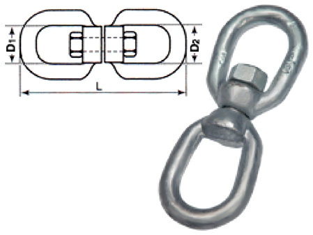 GRILLETE GIRATORIO ACERO DOBLE GALV.6 MM. INDUS