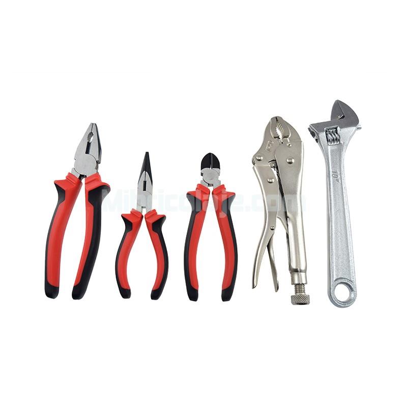 Alicates regulables y pinza ajustable de gran resistencia, con un diseño de dientes de mordaza curvos para apretar, sujetar y hacer girar objetos curvos como tuberías o tuercas.